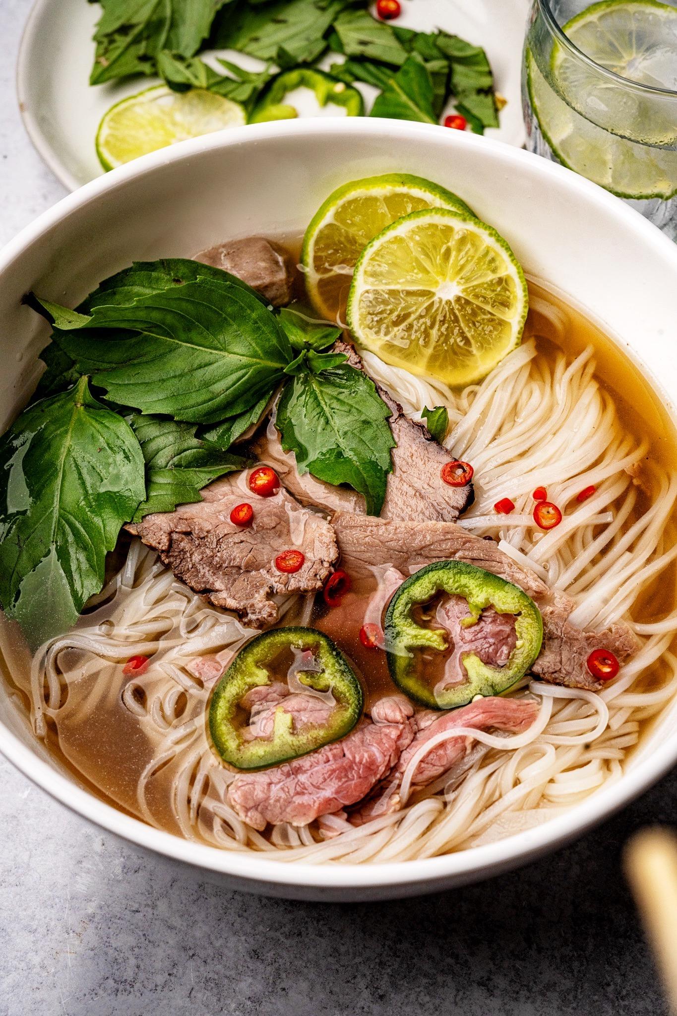 A: Pho is a traditional Vietnamese noodle soup, typically made with beef or chicken broth, rice noodles, herbs, and meat.