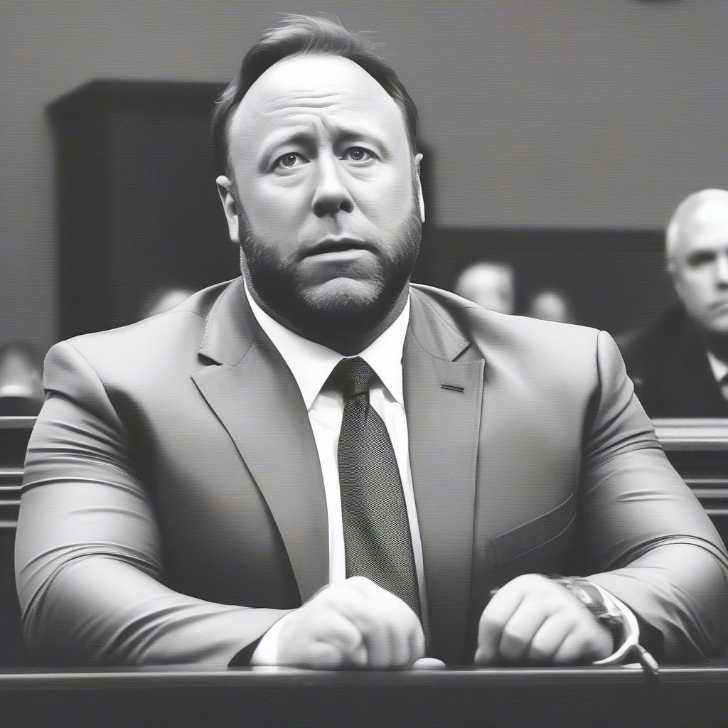 Alex Jones attending a court hearing related to defamation lawsuits