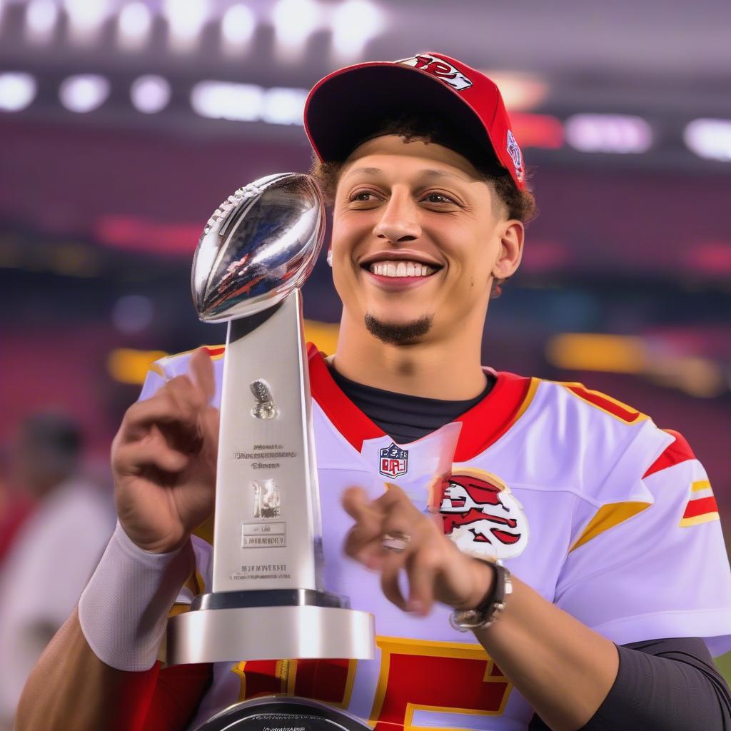 Patrick Mahomes accepting the Super Bowl LVIII MVP award