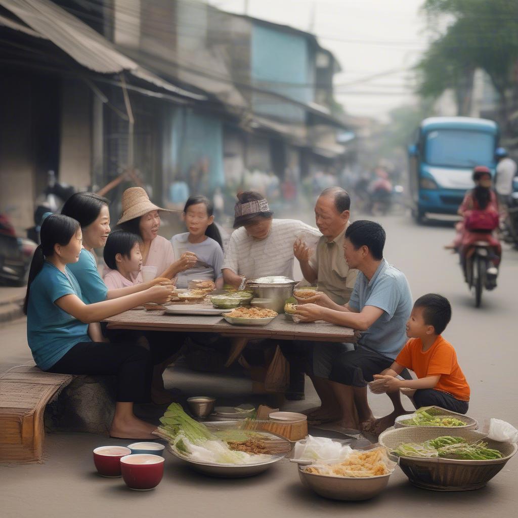 Vietnamese Street Food: Family Sharing a MealVietnamese Street Food: Family Sharing a Meal