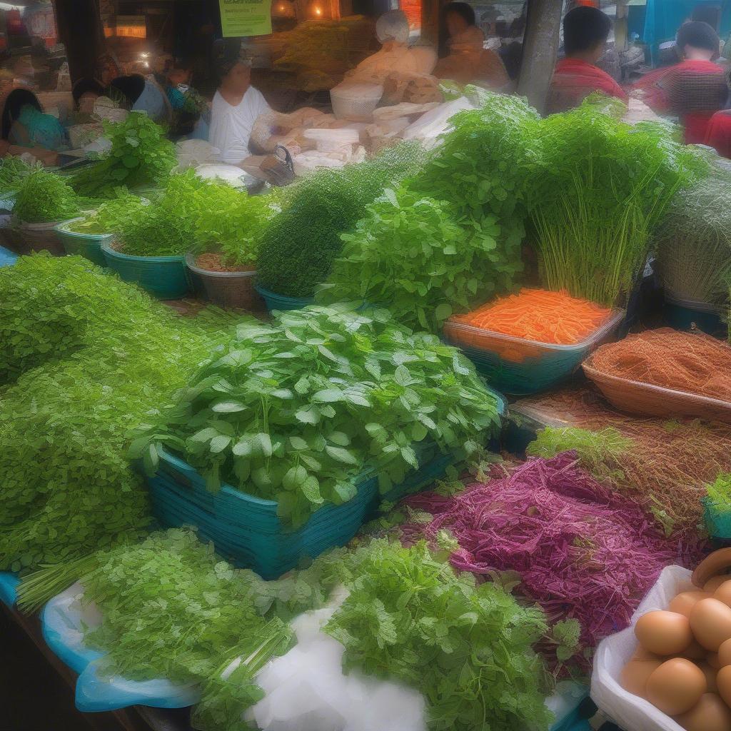 Vietnamese Street Food: Fresh Herbs at a Local MarketVietnamese Street Food: Fresh Herbs at a Local Market