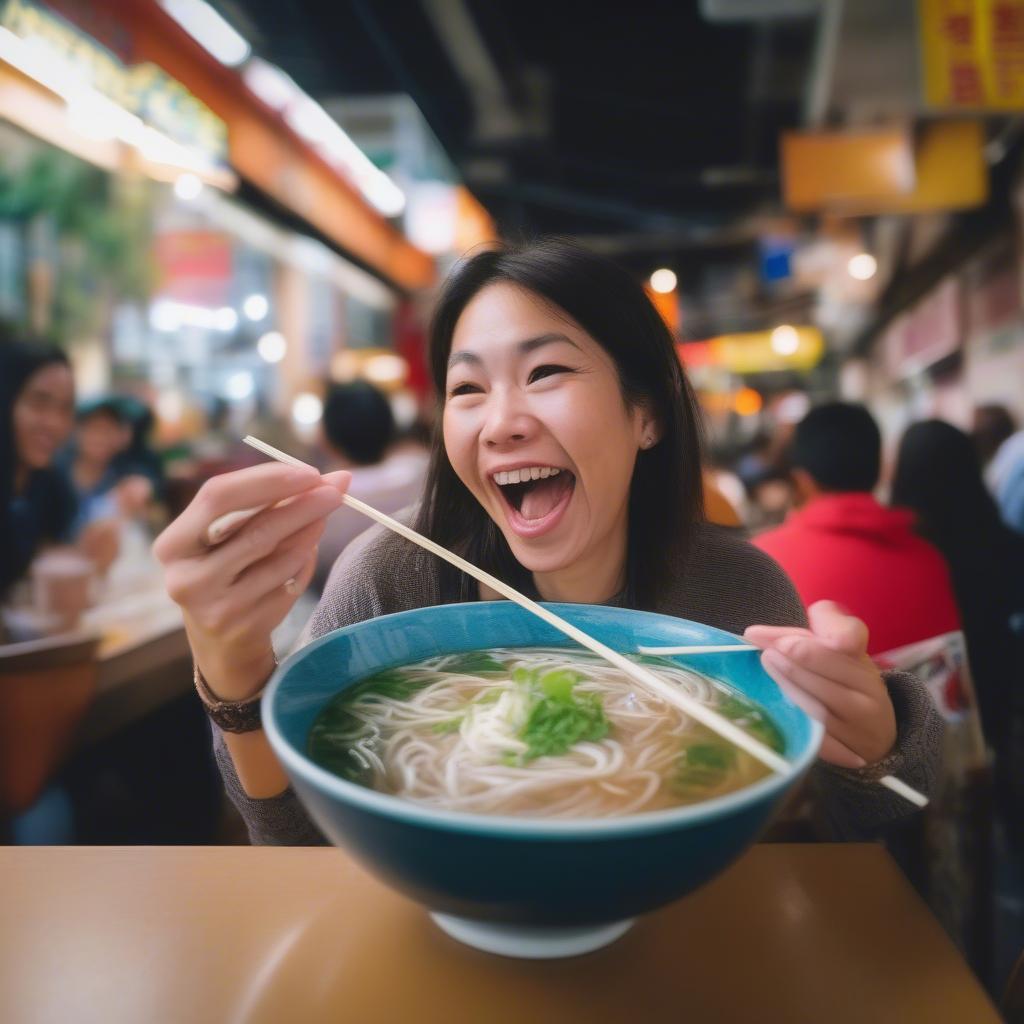 Tourist Trying Vietnamese Street Food for the First Time