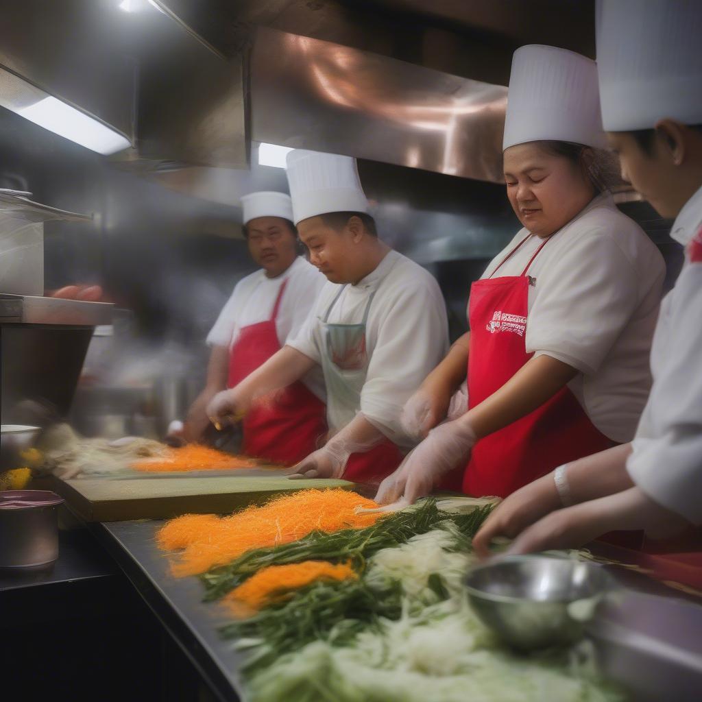Vietnamese Street Food Prep Cooks Chopping Vegetables