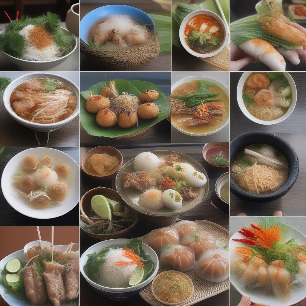 A collage of various regional Vietnamese street food dishes, highlighting the diversity of flavors.