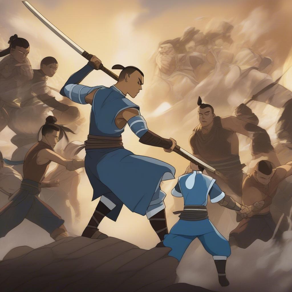 Sokka Fighting Alongside Team Avatar