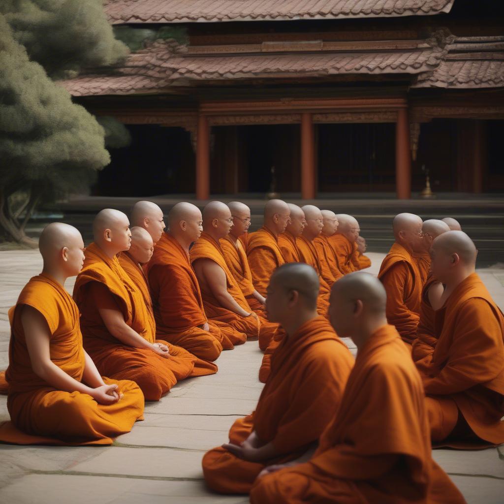 Buddhist Monks Meditating Together in Sangha